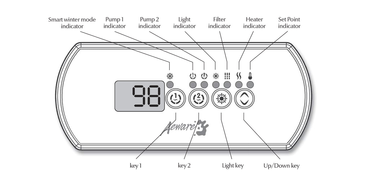 Included Overlay Button Layout : Pump1/Pump2/Light/Up/Down