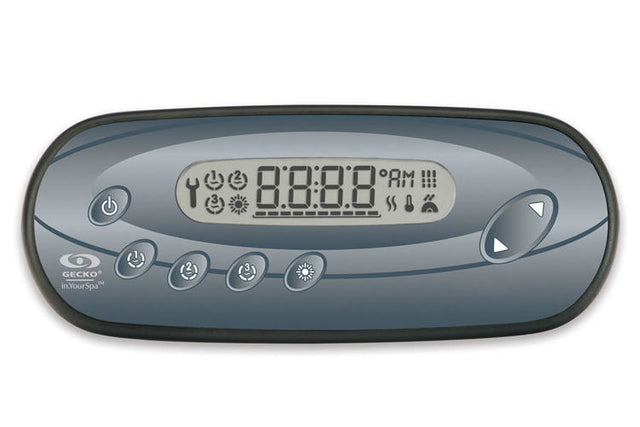 Gecko IN.450 keypads feature a large LCD display and slightly raised keys that let users control all spa system functions and programming directly from spa side. IN.K450 comes with a customizable overlay in an easy to install waterproof plastic enclosure designed to maximize users experience.