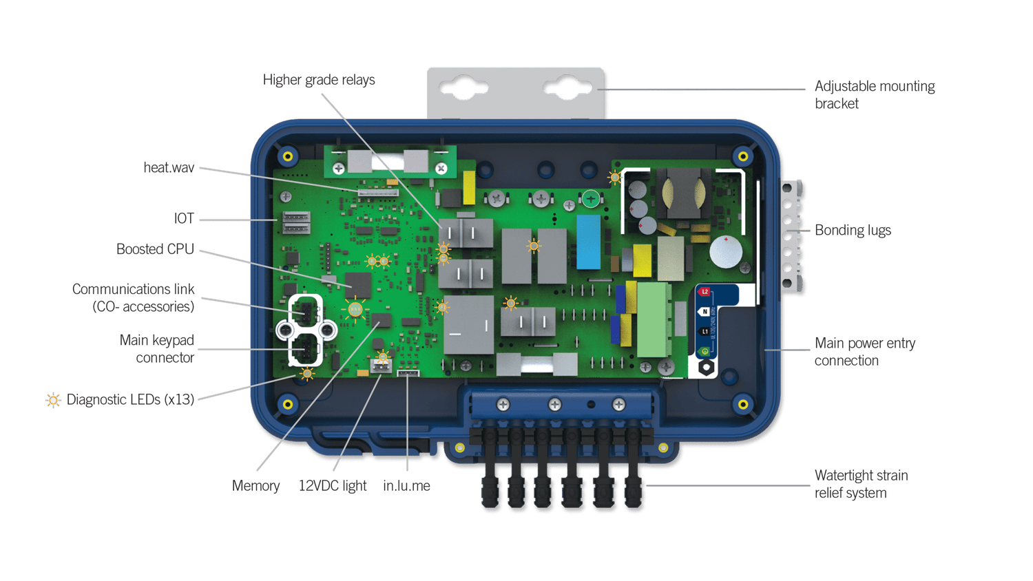 - The in.yj-V3 is a modular control system that separates the control unit from the heater, making it easier to fit in tight spaces. It works with heat.wav heaters and offers four power levels to match your hot tub’s needs.