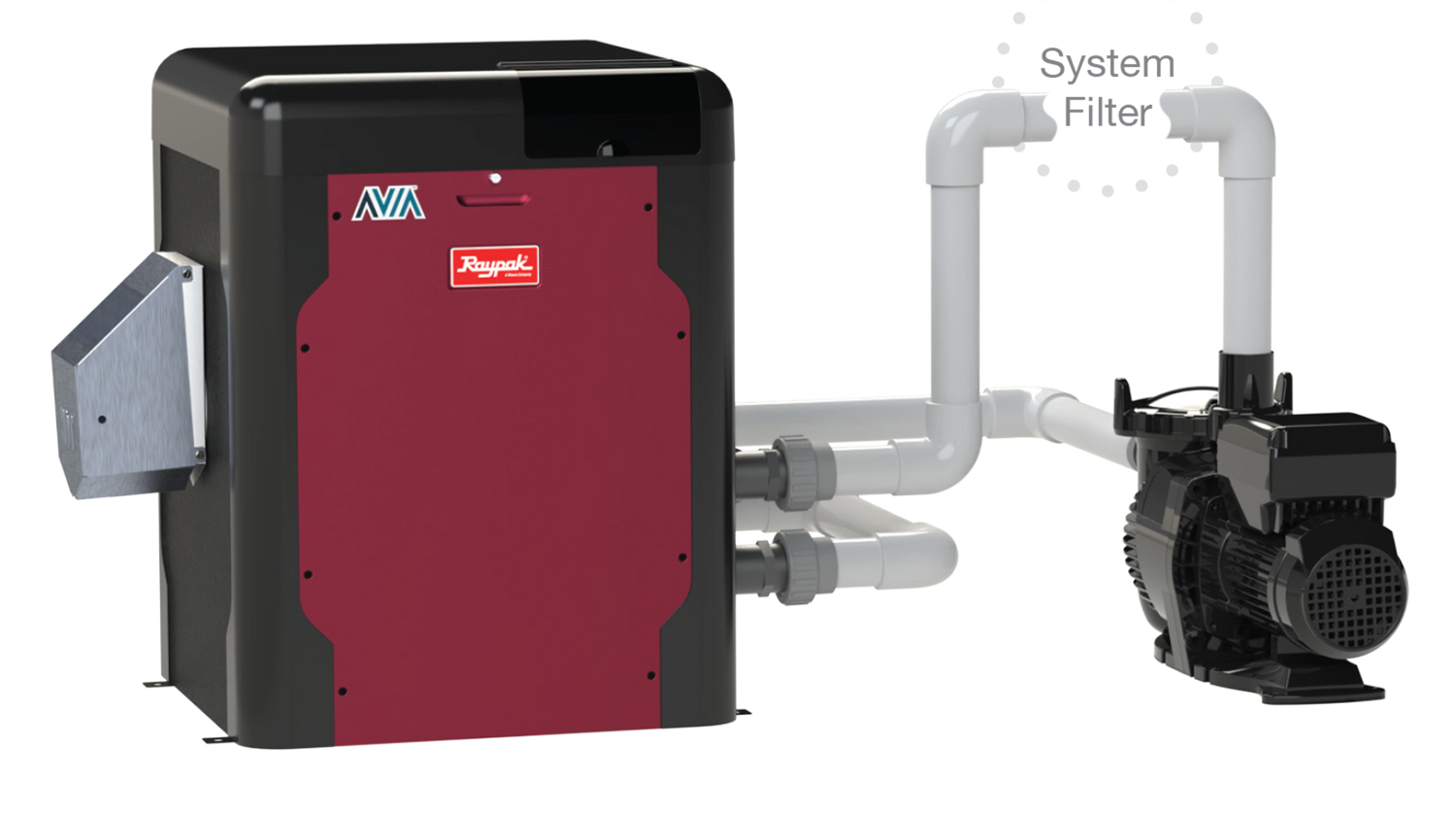 Smart Ecosystem Manager - AVIA can monitor and control your pool ecosystem including, pumps, lights, or water features so there is no need for expensive, complex external control systems.1AVIA pairs perfectly with our Protégé VSP (Variable Speed Pump) to create a uniquely Raypak pool heating experience – all controlled from the onboard control, or the Raymote App.