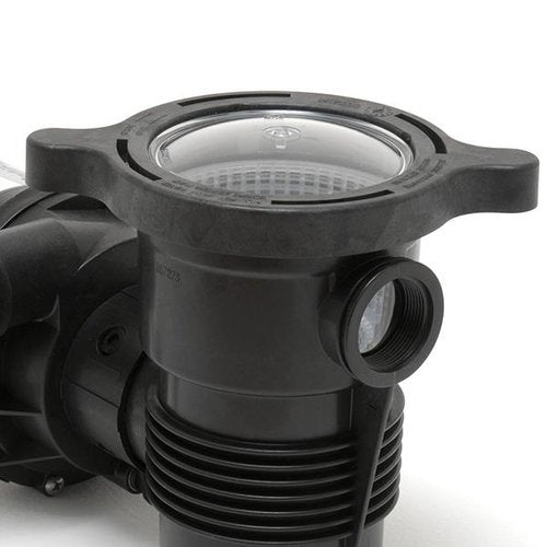 The OptiFlo vertical discharge aboveground pool pump has cam, ramp lid lock and a large strainer basket.