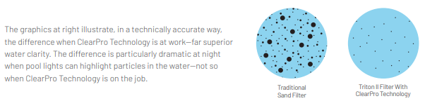 The secret is a component inside the filter—a porous tube through which water must pass before it reenters the pool. It creates a final barrier to the small particles sand cannot stop, including the finest dust particles, algae and pollens. The result is dazzling water clarity—a level not attainable by any sand filter without ClearPro Technology.